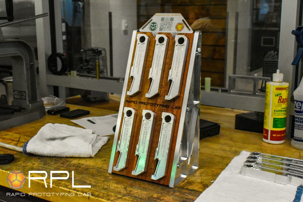 The Rapid Prototyping Laboratory designed and started manufacturing these billet aluminum bottle openers in very small quantities back in 2018 when the RPL was known as R3D3. Over the years, with multiple variations in design and programming, changes in machinery, and increased knowledge of the equipment and craft, the lab has mastered the process of manufacturing this tool.